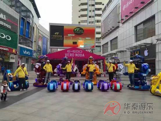 为了进一步丰富在广场上面活动的人们精神生活,南宁万达广场特意与广州市华秦游乐设备有限公司(简称:华秦游乐)合作,采购一大批游乐设备,其中包括多台华秦游乐主打的广场行走机器人、乐吧车豪华版、游乐太子摩托车等。